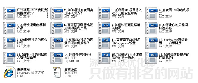 深一優(yōu)化部seo教程包總共包括17套完整SEO視頻教程 分別是: